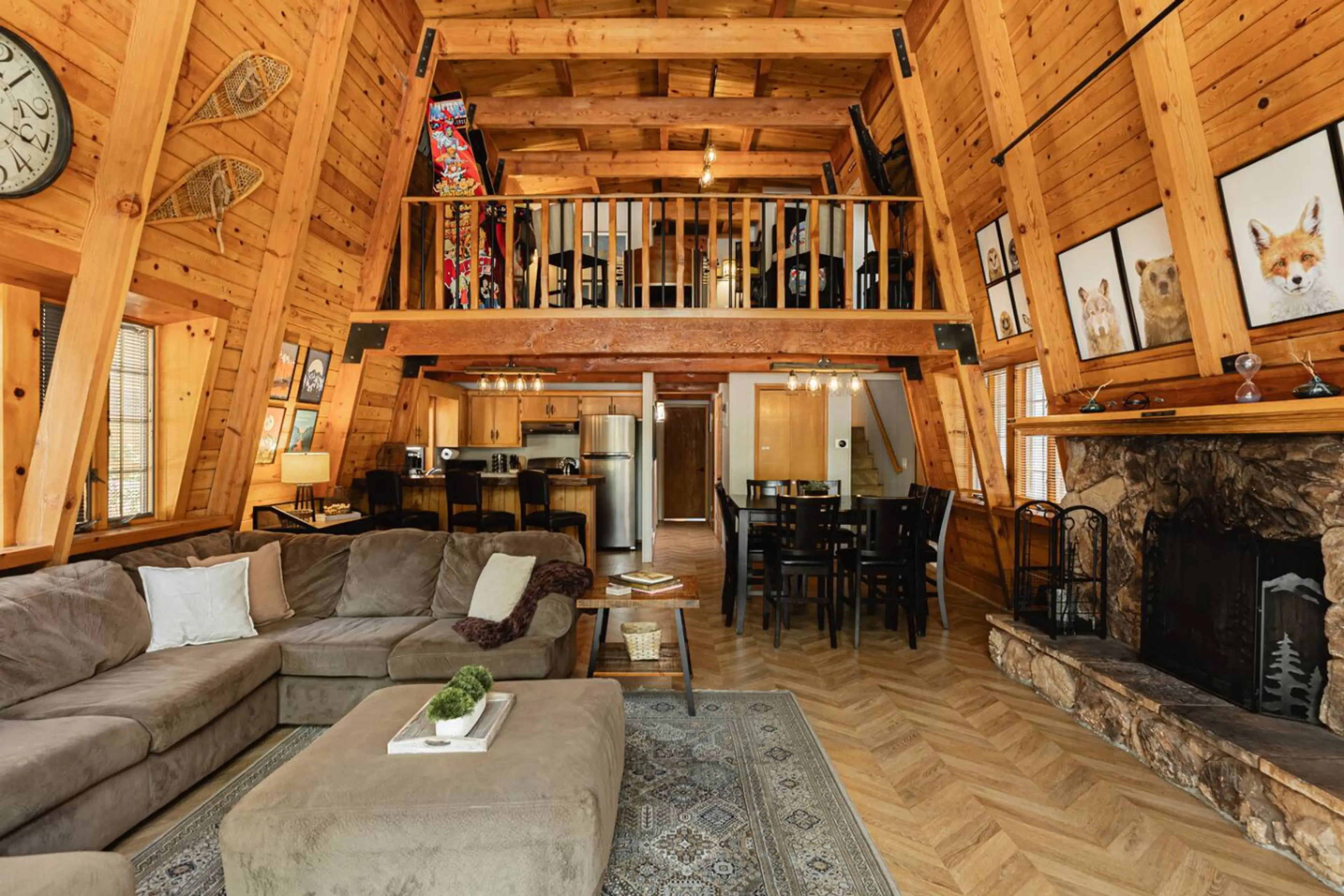 Welcome to 99 Pines Retreat – your cozy mountain getaway just 2 blocks from Snow Summit! This 1500 sq ft cabin is perfect for relaxing & making memories: Sleeps 8 | 3 bedrooms | 4 beds | 2.5 baths Private hot tub & sunset fire pit deck Game loft w/ 55” TV, arcade + foosball 2 blocks to Snow Summit ...