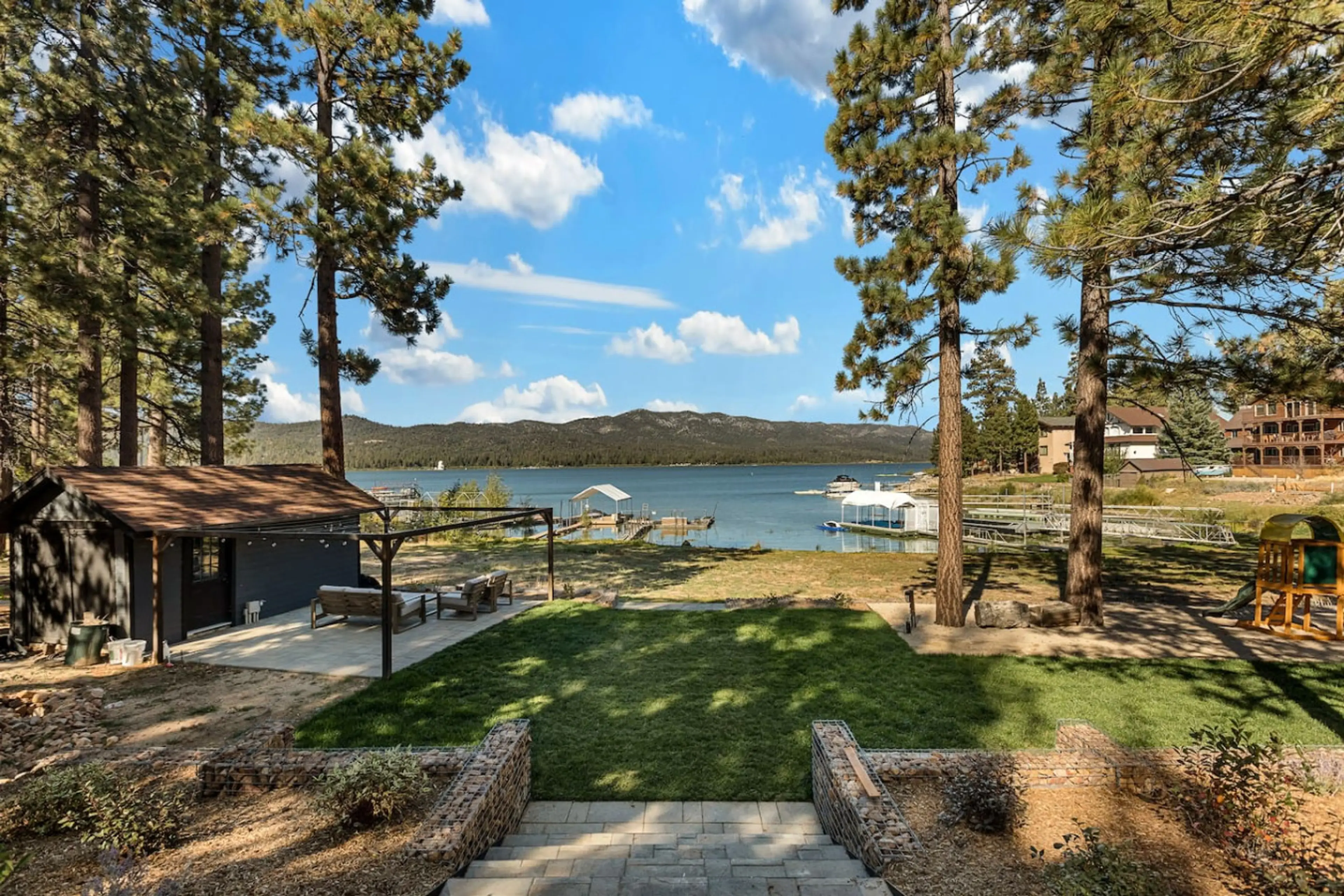 Welcome to Ballentine Lake Lodge - a one-of-a-kind private lakefront retreat in Big Bear's best cove, perfect for families & large groups! Sleeps 8 | 4 bedrooms | 8 beds | 2 baths 100ft of lakefront - private dock, fire pit & al fresco dining Half-acre backyard w/ gas BBQ, sun loungers & stunning...