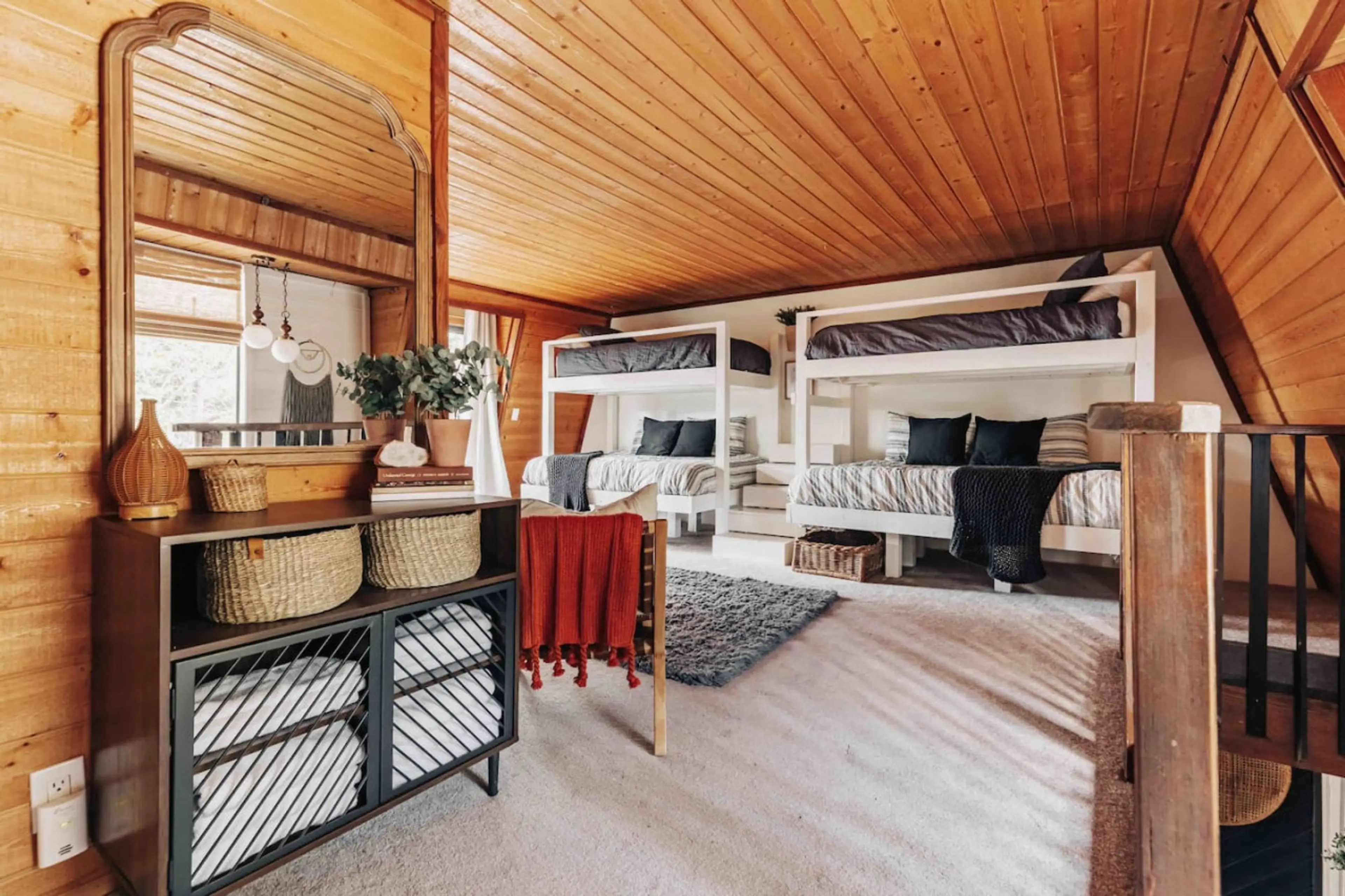 Welcome to our bohemian vintage-inspired cabin in the mountains of Big Bear, Ca. Our cabins decor was inspired by its 1979 charm and my eclectic mix of style from my Orange County boutique House of Butterfield. The streets are lined with pine trees and stars blanket the sky. A truly beautiful mounta...