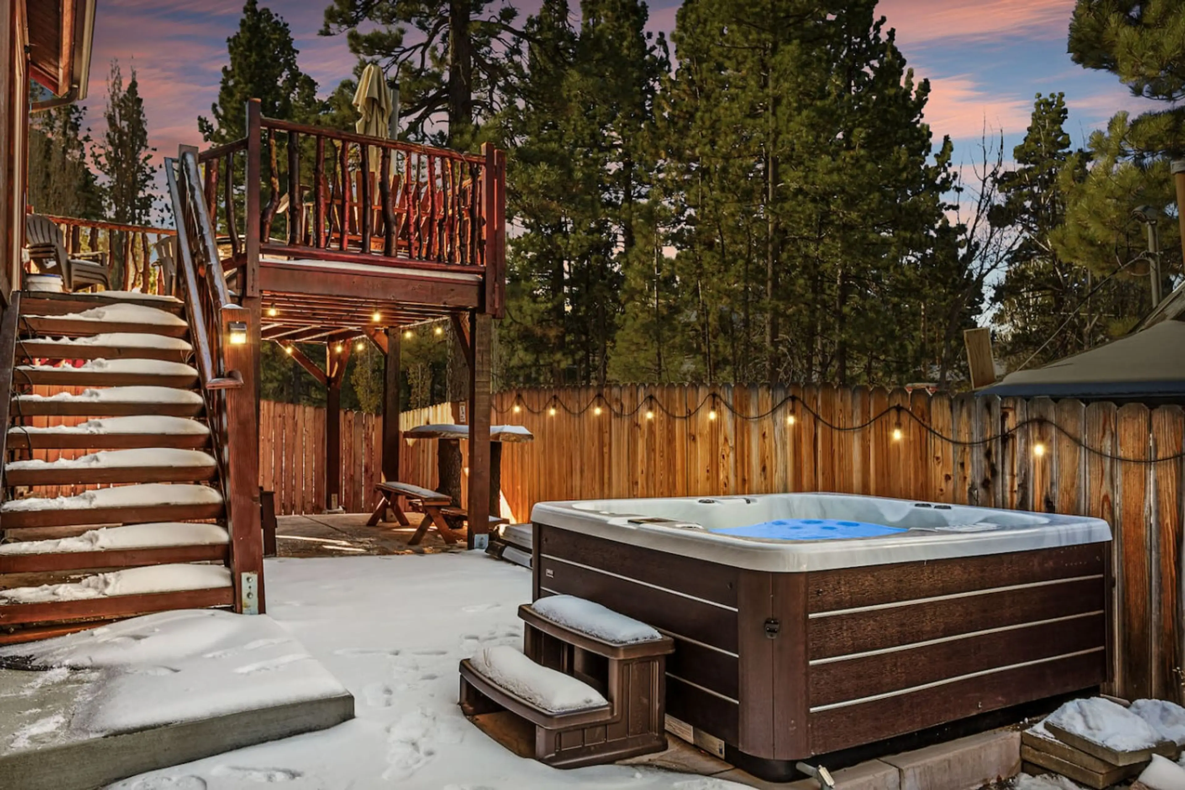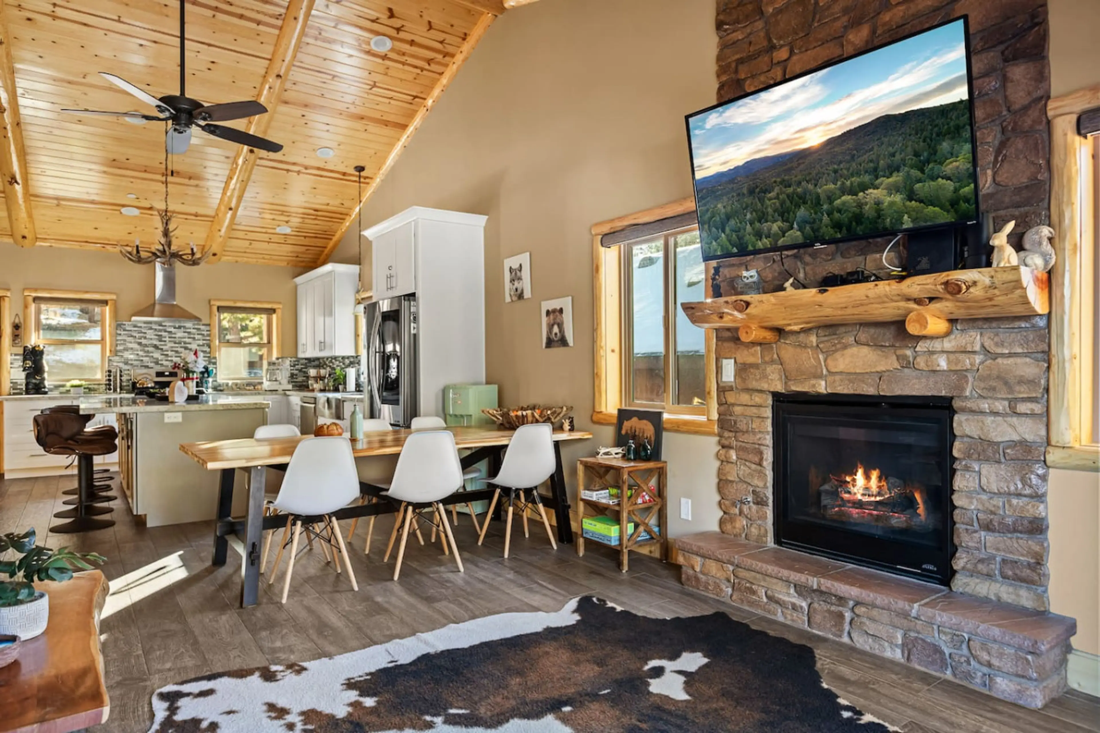 Unwind in this modern chic 3-bedroom, 2-bathroom retreat, where rustic charm meets modern comfort. The cozy living room, complete with a crackling fireplace, invites you to relax and recharge. After a day of adventure, soak your cares away in the hot tub under the starry sky. With comfortable bedroo...
