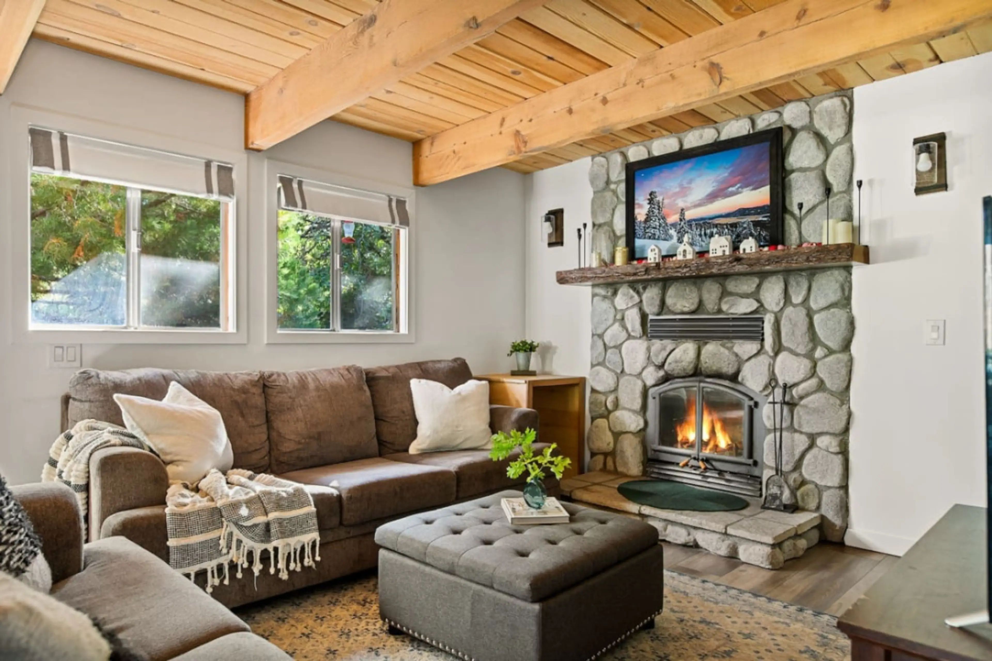 Welcome to Alpen Haus - your perfect Big Bear mountain escape, steps from Big Bear Mtn & trails for all seasons! Sleeps 7 | 3 bedrooms | 7 beds | 2 baths Hot tub, private sauna, fire pit & gas BBQ Walk to Big Bear Mtn, easy trail & bike access in spring/summer Game room w/ pool table, Pac-Man arca...