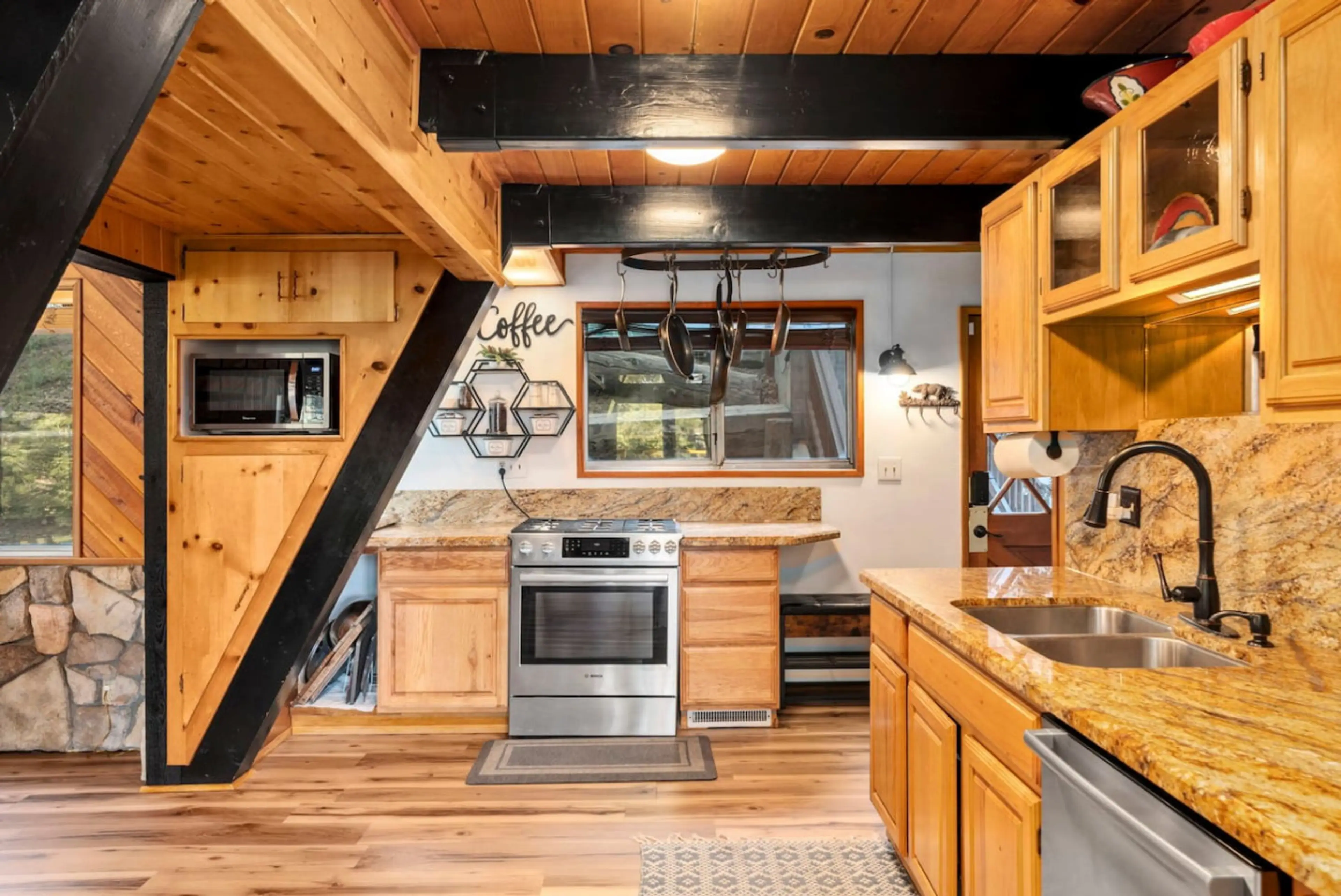 Experience alpine luxury at this Swiss-inspired A-Frame chalet, just a 5-minute walk to Bear Mountain Ski Resort—perfect for ski season! Recently remodeled, this high-end retreat features 4 bedrooms, stunning views of the mountains and forest from every room and a blend of boho-chic elegance with cl...