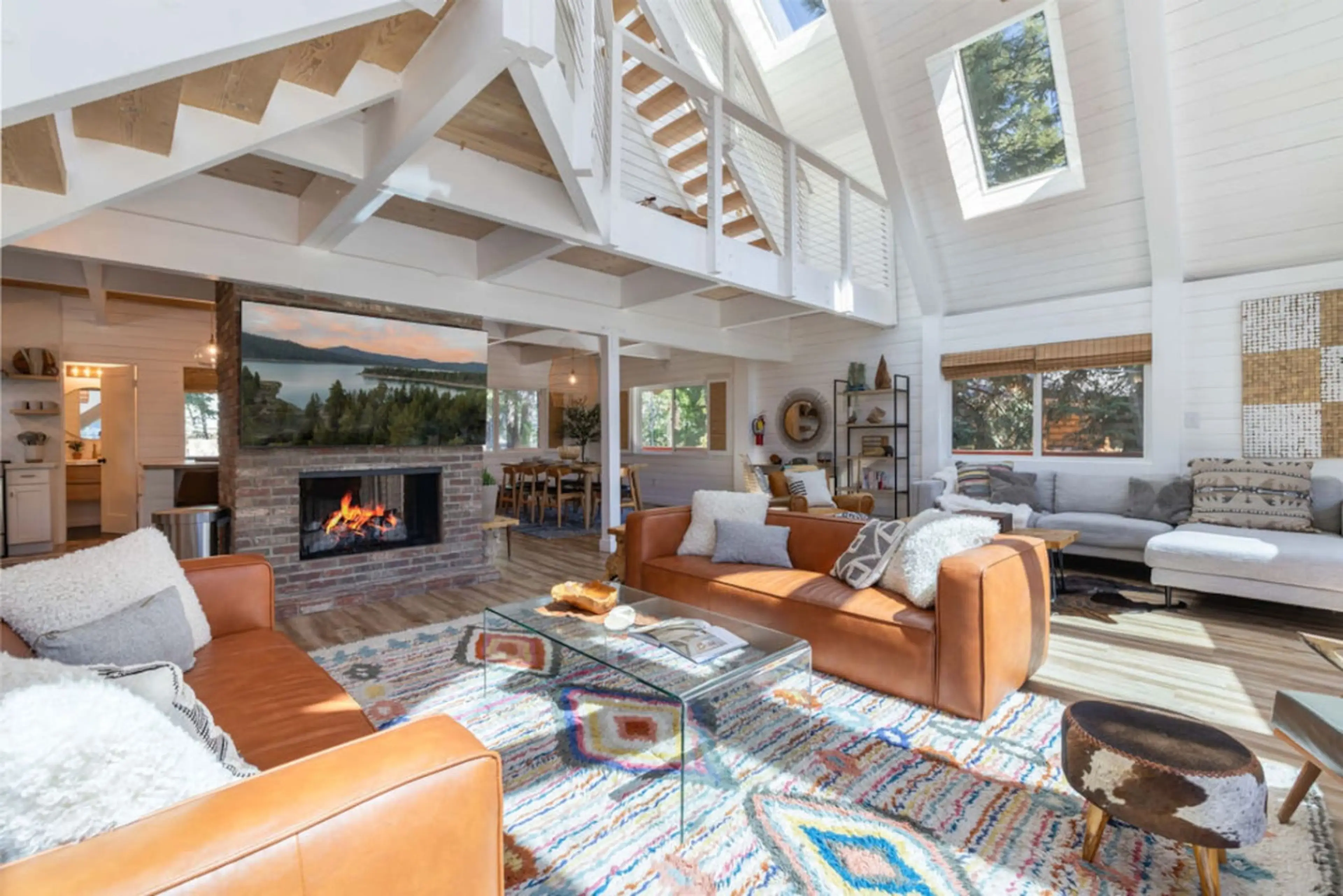 Welcome to The Point at Moonridge- a modern A-frame w/ curated boho style, blending comfort & character in Big Bear’s Moonridge neighborhood: Private hot tub Game room w/ pool, ping pong Skeeball, air hockey, retro arcade, shuffleboard Movie room for cozy nights in Wrap-around deck w/ fire pit, B...
