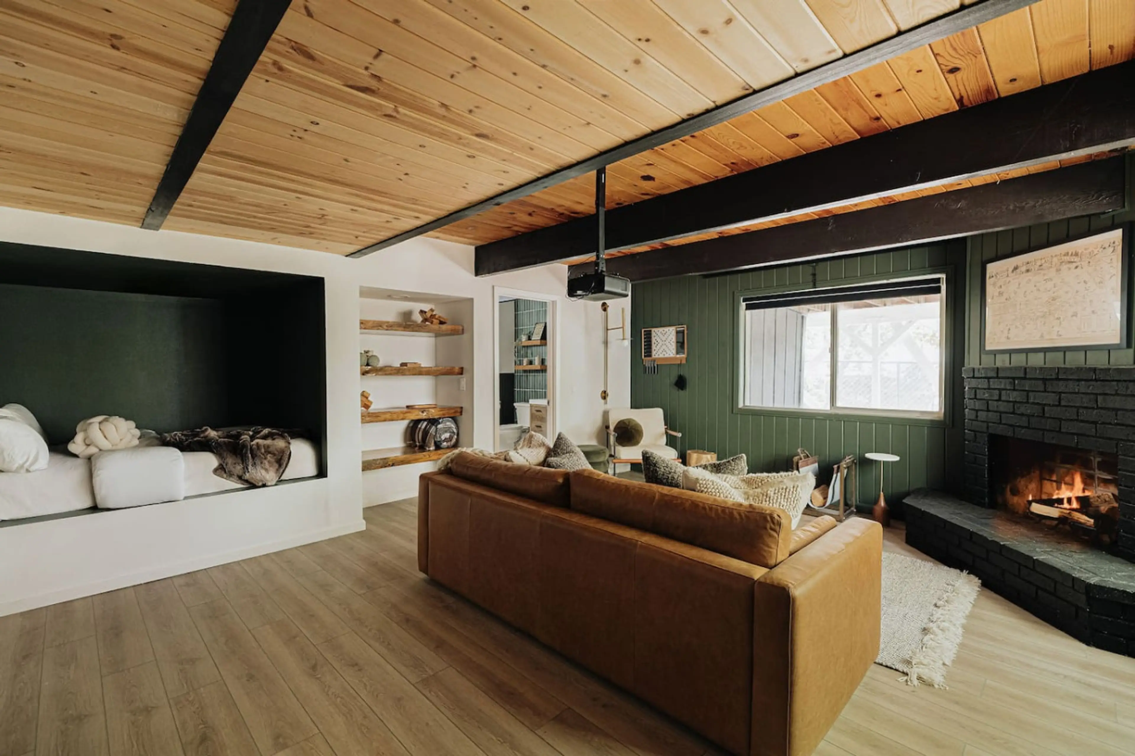 Welcome to Rockspray Retreat - a cozy yet modern retreat surrounded by towering pines and endless adventure! Perfect for families & groups, this designer cabin blends rustic charm w/ upscale comfort: Sleeps 10 - 4 bedrooms - 5 beds - 3 baths Steps from Bear Mountain slopes & trails Expansive deck w...